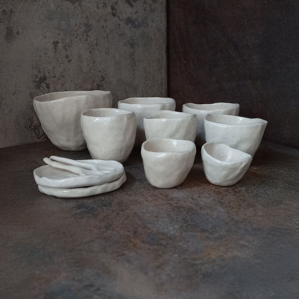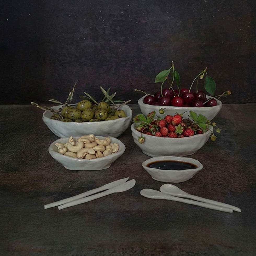 Nacidas del gesto libre y del ritmo lento de la tierra. Piezas orgánicas e irregulares, con bordes ondulantes como cauces y superficies que reflejan capas minerales y líquenes dormidos. Formas que no replican la naturaleza, dialogan con ella.